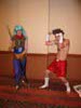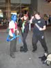 | Stuck in an elevator... Lens fogged up...need cigarette... | T.V. Boy (on stilts) going through revolving door |